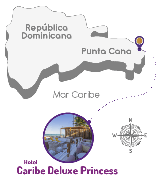El Caribe Deluxe Princess Hotel se encuentra en una de las playas más hermosas de la República Dominicana, Playa Bávaro. Su ubicación te brinda la oportunidad de sumergirte en un entorno donde la belleza de los paisajes y la magia de sus aguas cristalinas te ofrecen una sensación de paz y serenidad inigualable. Además, estarás justo en la playa y, adicionalmente, a solo 25 minutos en coche del Aeropuerto de Punta Cana.