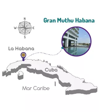 El hotel Gran Muthu Habana te brinda un distintivo de sofisticación, estilo y elegancia. Su ubicación privilegiada lo sitúa cerca de la quinta avenida de La Habana, ofreciendo una vista espectacular al mar, junto al Acuario Nacional. Este moderno hotel de nueva construcción se encuentra a tan solo 10 minutos del encanto majestuoso de La Habana Vieja y al lado de un centro comercial que alberga las principales marcas internacionales. Nuestras habitaciones están completamente equipadas para garantizar la máxima comodidad de nuestros huéspedes. Además, ofrecemos una variedad de servicios que incluyen salas de reuniones, piscinas, gimnasio, el spa Maia, el Snack Bar Gita y restaurantes que te permitirán disfrutar de una experiencia gastronómica inolvidable.