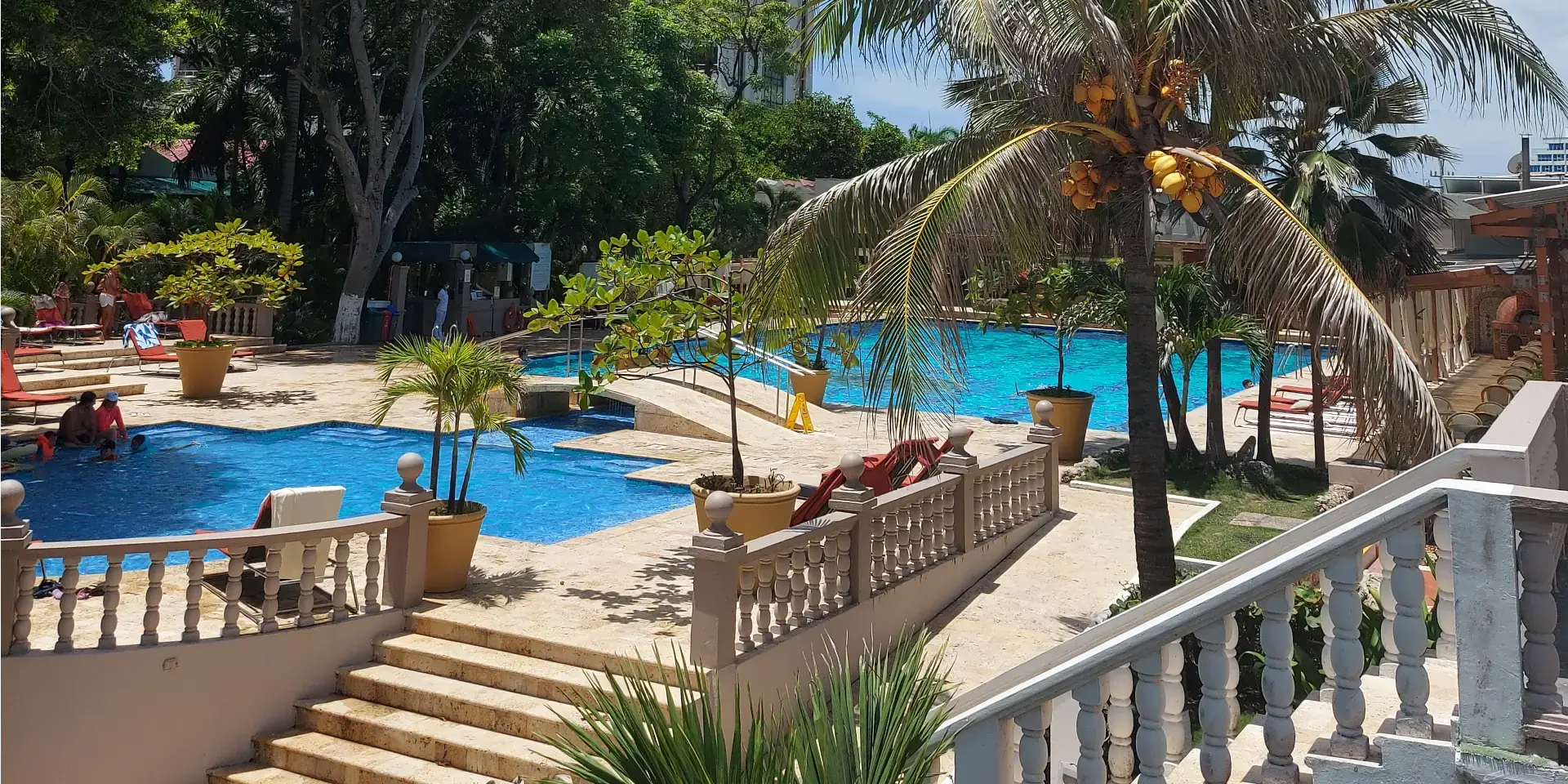 Este hotel de lujo, con una elegante arquitectura de estilo colonial, es una de las propiedades más icónicas de la ciudad y ostenta el estatus de monumento nacional en Cartagena. Está situado en Bocagrande y ofrece acceso directo a la playa. El hotel está rodeado de amplios y exquisitos jardines tropicales, donde en algunas ocasiones se pueden avistar animales autóctonos de la región, como perezosos, tucanes y ciervos. Destaca como el único establecimiento hotelero en la zona que dispone de una piscina semiolímpica al aire libre y un parque infantil ideal para los más pequeños. Para los adultos, se ofrece un spa de servicios completos y tres restaurantes que sirven platos de alta cocina. Además, el hotel cuenta con un gimnasio, una terraza para tomar el sol y un centro de negocios.